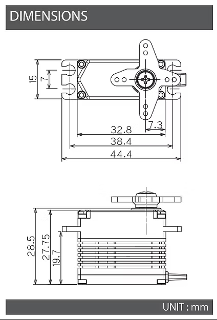 Stall torque : 13.4kg-cm@6.6V / 15.0kg-cm@7.4V / 17.0kg-cm@8.4V